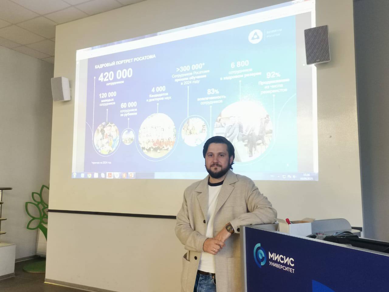 10 сентября представители института встретились со студентами ключевых для атомной отрасли институтов: новых материалов, биомедицинской инженерии, физики и квантовой инженерии. С презентацией о компетенциях и ключевых направлениях деятельности АО «ВНИИНМ» выступил начальник управления развития новых направлений деятельности Александр Пономаренко. Он подробно рассказал о перспективных научно-исследовательских проектах института и требованиях к современным специалистам.
