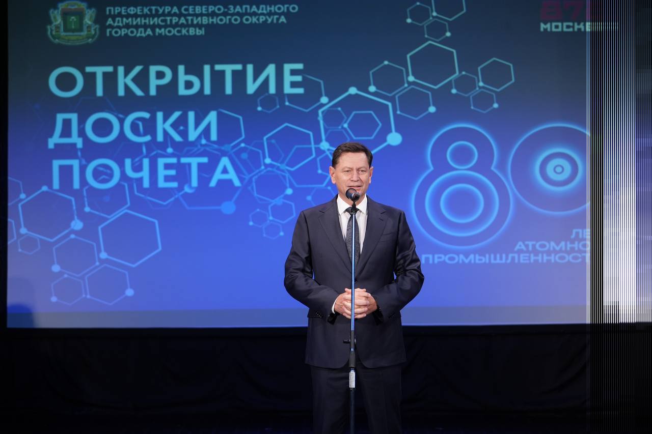 В культурном центре «Салют» состоялась торжественная церемония открытия Доски почёта, посвященной юбилею атомной промышленности. На ней представлены имена 12 выдающихся сотрудников предприятий Северо-Западного административного округа столицы, внесших значительный вклад в развитие отечественной науки, оборонного комплекса и промышленности.